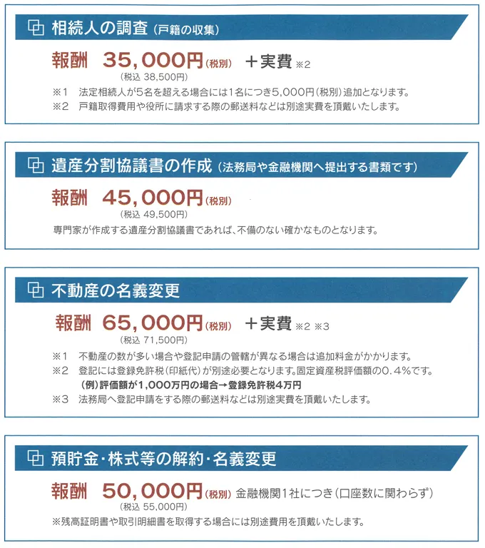 相続手続きの料金説明