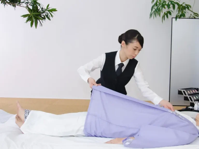 故人さまのお身体を清潔にしたうえで、お召し物のお着替えやお化粧を行い、心を込めて新たな旅立ちのお仕度をする、大切な儀式をおくりびとが行います。