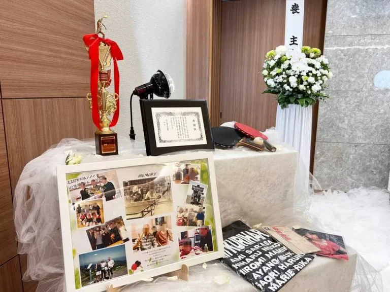 故人さまとの大切な思い出の写真をお預かりし、思い出パネルを作成いたします。祭壇前に思い出コーナーを設置して、故人さまの思い出の品々と一緒にお飾りします。