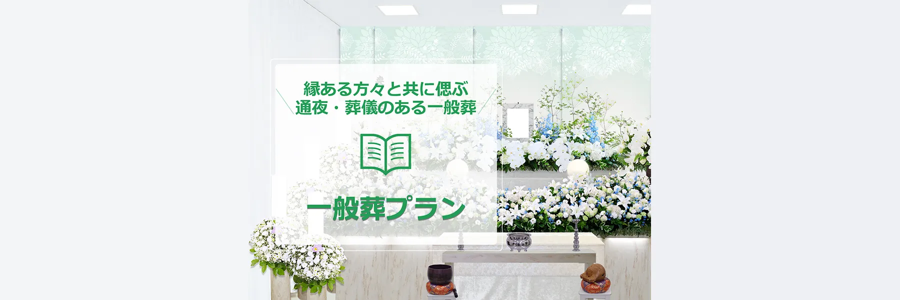 一般葬プランとは、家族や親族、故人と親しい関係のある方々と共に通夜、告別式を行う葬儀形式です。多くの方にご参列いただくことで、葬儀後に自宅を訪ねてくる弔問客も少なくなるため、遺族の負担を軽減することができます。