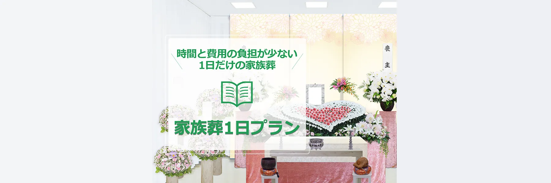 家族葬1日プランとは、お通夜を行わず葬儀式と火葬を1日で行う葬儀形式です。家族葬1日プランのメリットは葬儀式のみで通夜がない分、ご家族と親族の時間と経済的負担を軽減することできます。