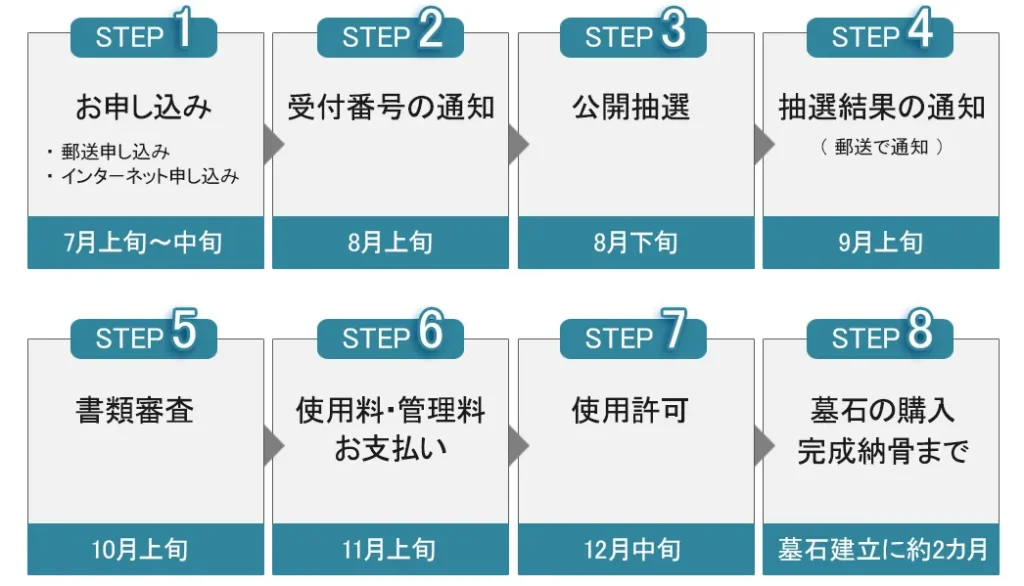 ご当選された場合、墓石プランナ-が当選された霊園に出向き、お客様の当選区画の確認と区画全体の撮影を行ないご報告いたします。建墓のご要望をおうかがいして完成予想図面の作成と御見積り致します。